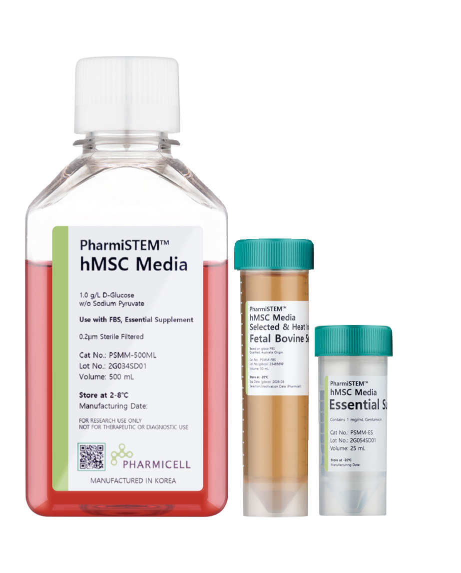 파미셀에서 개발한 중간엽줄기세포 전용 배양배지로, DMEM-low glucose media를 기반으로 Essential supplements와 FBS를 최적의 비율로 배합하여 구성되어 있습니다.