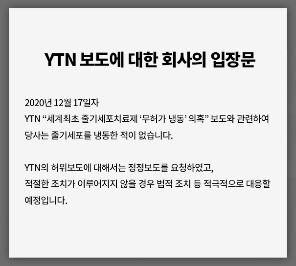 YTN 보도에 대한 회사의 입장문